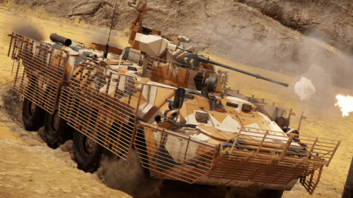 В игру БТР-82АТ был введён в обновлении 2.51 «Остриё копья». Это более совершенная версия БТР-80А, превосходящая её по всем параметрам. Обходу по флангам способствует стабилизатор, дающий возможность вести точный огонь в движении, а ведению огня из ПТРК с больших дистанций — тепловизор высокого разрешения. Более мощный двигатель повысил подвижность машины, но вот с защищённостью есть нюанс. Штатная броня не отличается от БТР-80А, а навесные экраны хоть и делают БТР-82АТ почти неуязвимым к огню крупнокалиберных пулемётов, но значительно снижают динамику, и новый двигатель это не компенсирует.